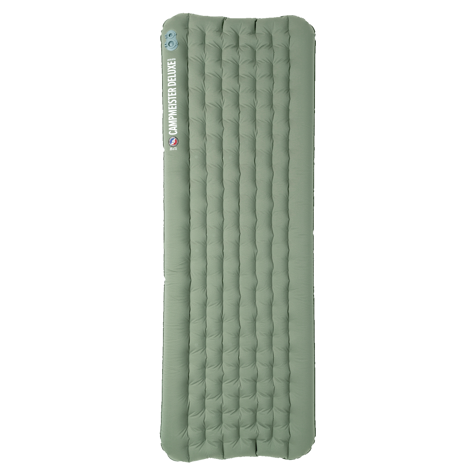 On top, an ultra-comfortable and super-quiet quilted stretch top provides a cushioned, pillow-soft sleeping surface for maximum sleep-ins, and inside an incredible Insulation R-Value of 7 is ready for even the coldest backcountry winter nights. You'll sleep soundly season after season as the burly 70D recycled nylon fabric and aviation-grade TPU lamination work together to keep leaks at bay. Perfect for when you're not willing to compromise between lightweight, warm, durable, and packable, the Campmeister Deluxe Insulated is the ultimate in backcountry comfort!